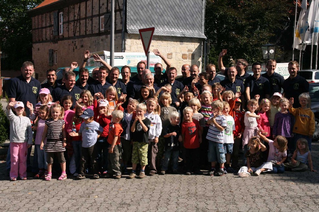 War es in ersten Jahr noch ein echtes Abenteuer, den Baum in die Lüfte zu hieven, so ist es heute praktisch ein "Kinderspiel". Ermöglicht durch die im zweiten Jahr angefertigte Halterung werden die "jungen Väter" in jedem Jahr tatkräftig durch eine Vielzahl anwesender Kinder unterstützt, die an langen Seilen und mit vereinten Kräften den 12m langen Baum in die Lüfte ziehen.